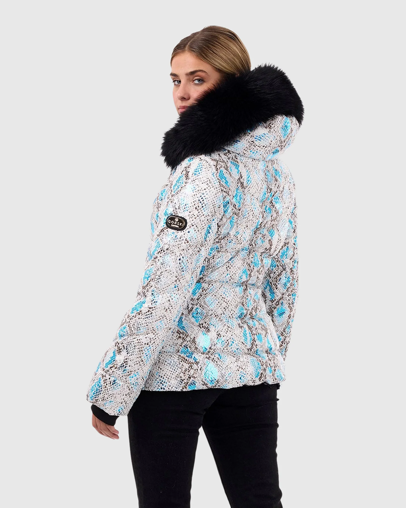 Printed Après-Ski Jacket with Detachable Toscana Shearling Lamb Hood Trim