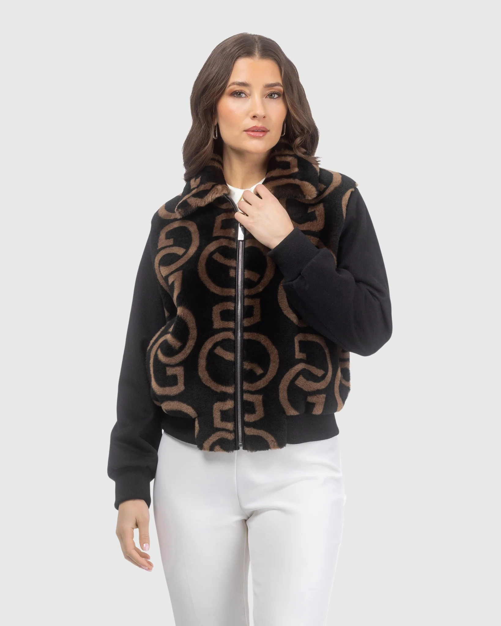G-Printed Merino Shearling Lamb Bomber Jacket Crafted with Loro Piana Wool Trim