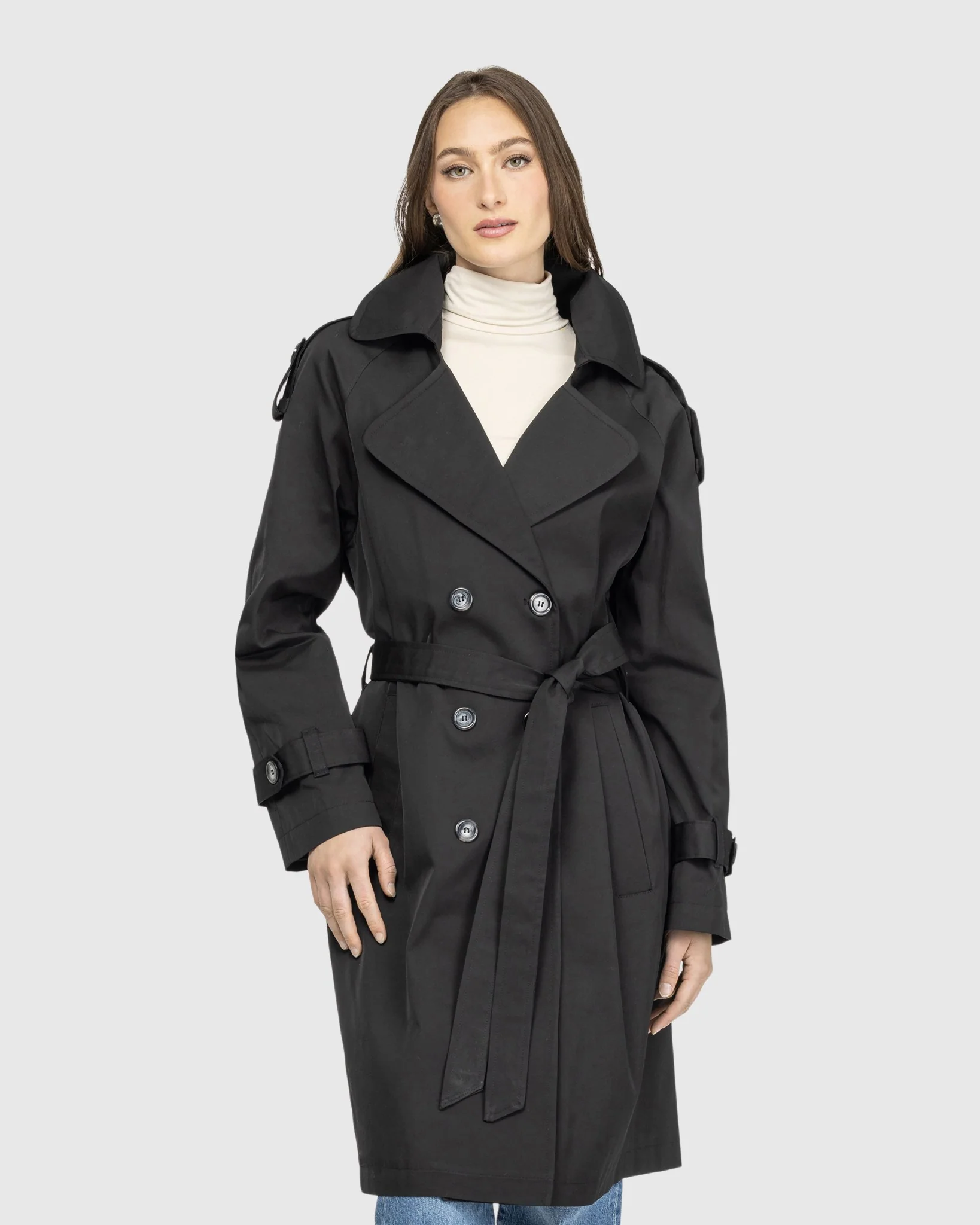 This lightweight belted trench coat offers a perfect blend of style and practicality. Designed for easy layering, its breathable fabric keeps you comfortable in changing weather.Â