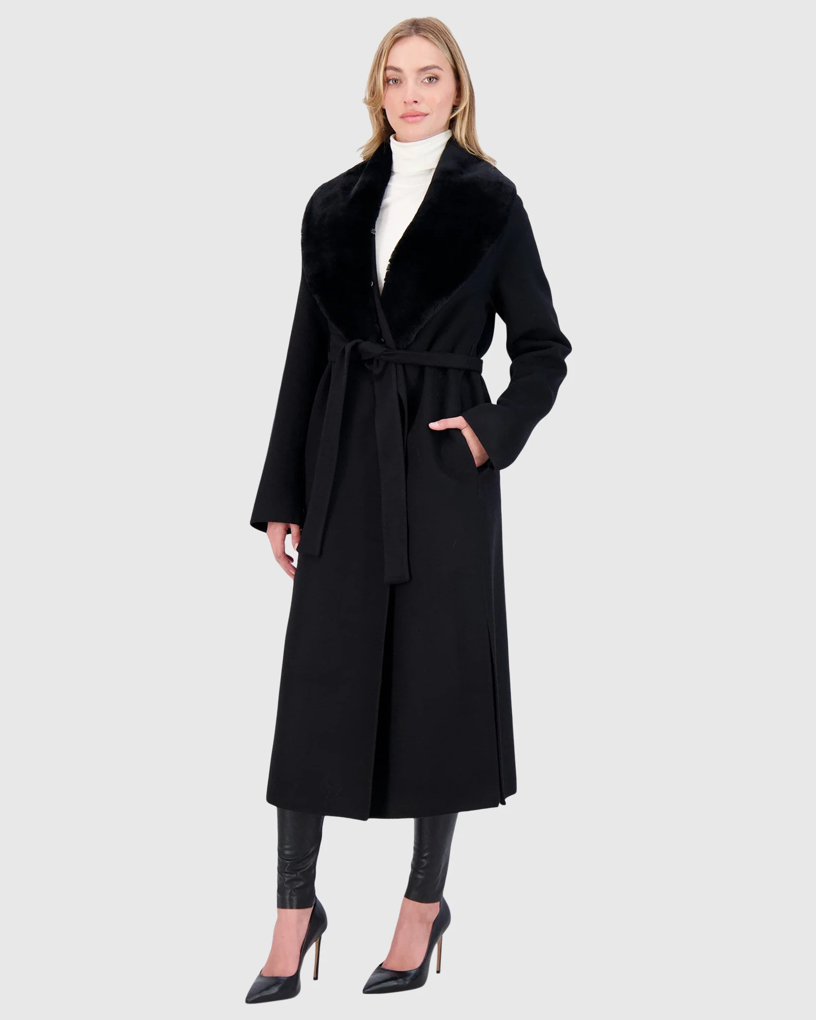 -70%Short Coat Crafted From Loro Piana Wool with Select Shearling Lamb Collar—