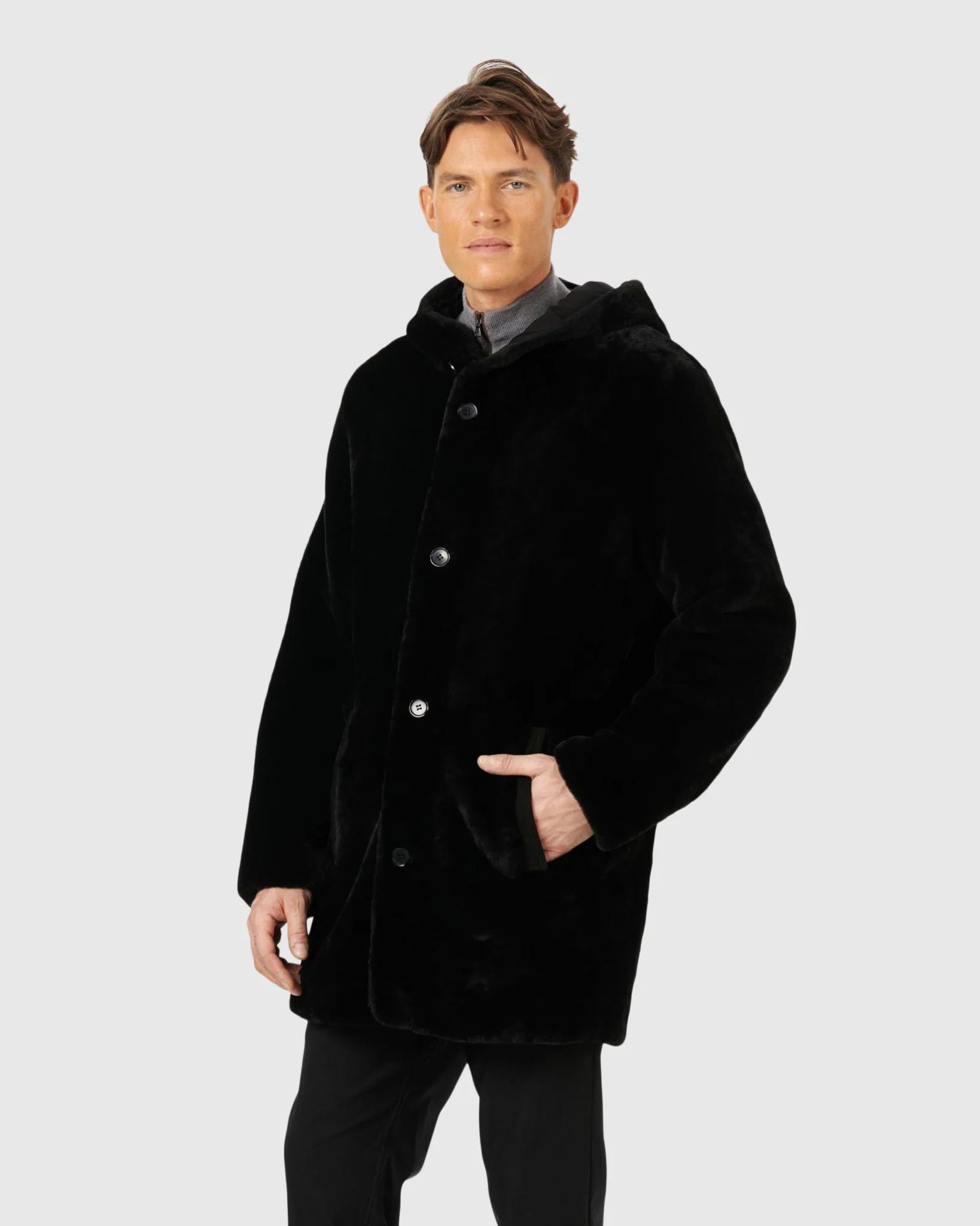 Stay warm and stylish with the Men's Reversible Select Shearling Lamb Parka. Crafted from premium shearling lamb, this parka offers exceptional insulation and comfort. Its reversible design provides versatile wear options, allowing you to switch up your look effortlessly.Â