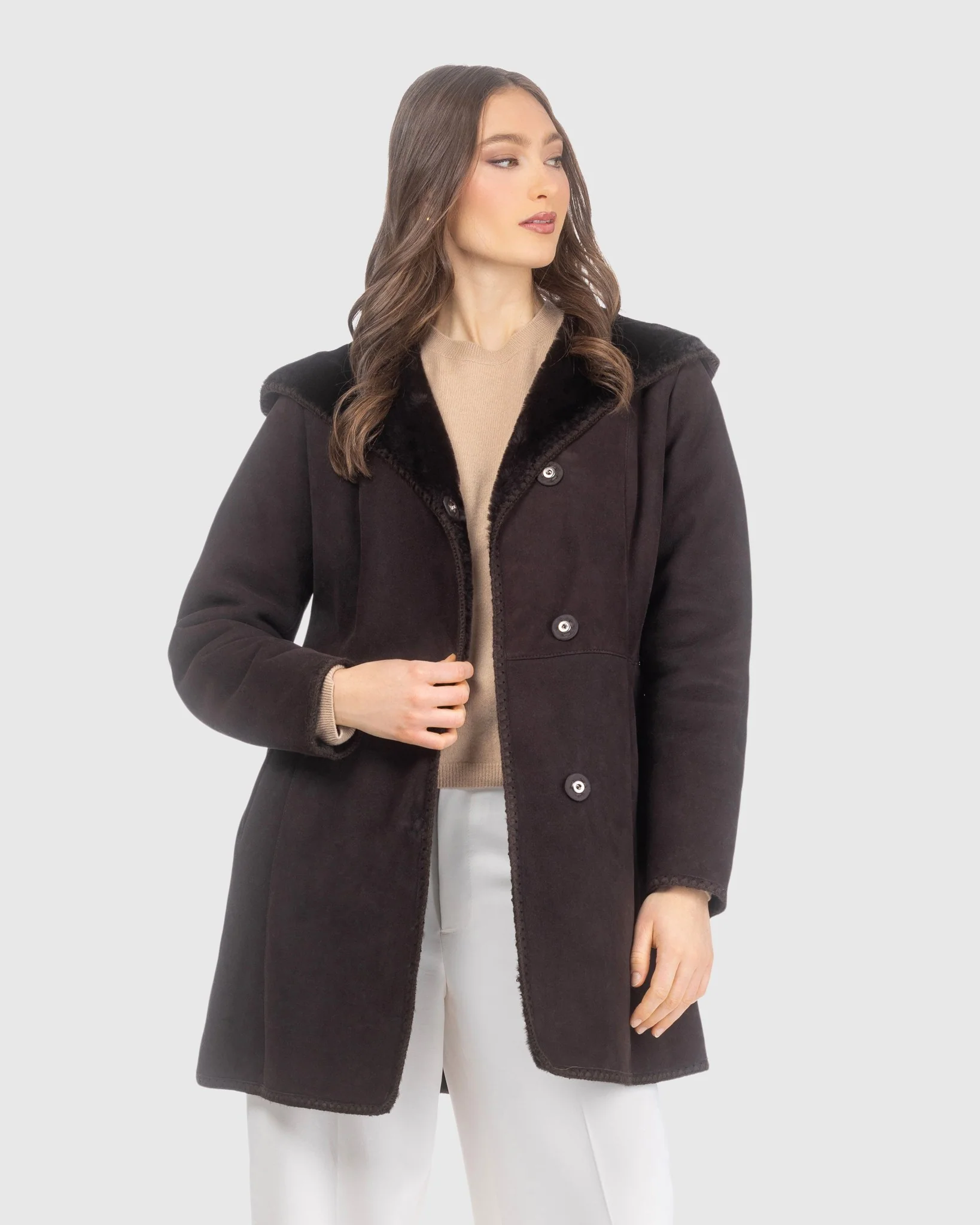 This Merino Shearling Lamb Parka with Embroidered Trim offers cozy warmth and a distinctive style.