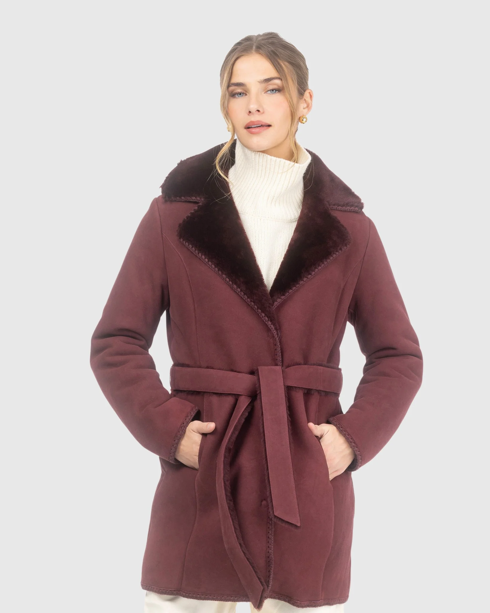 The Merino Shearling Lamb Stroller with Embroidered Trim and Belt combines luxurious warmth with refined detailing. It’s the perfect choice to keep you cozy and polished throughout the colder months.