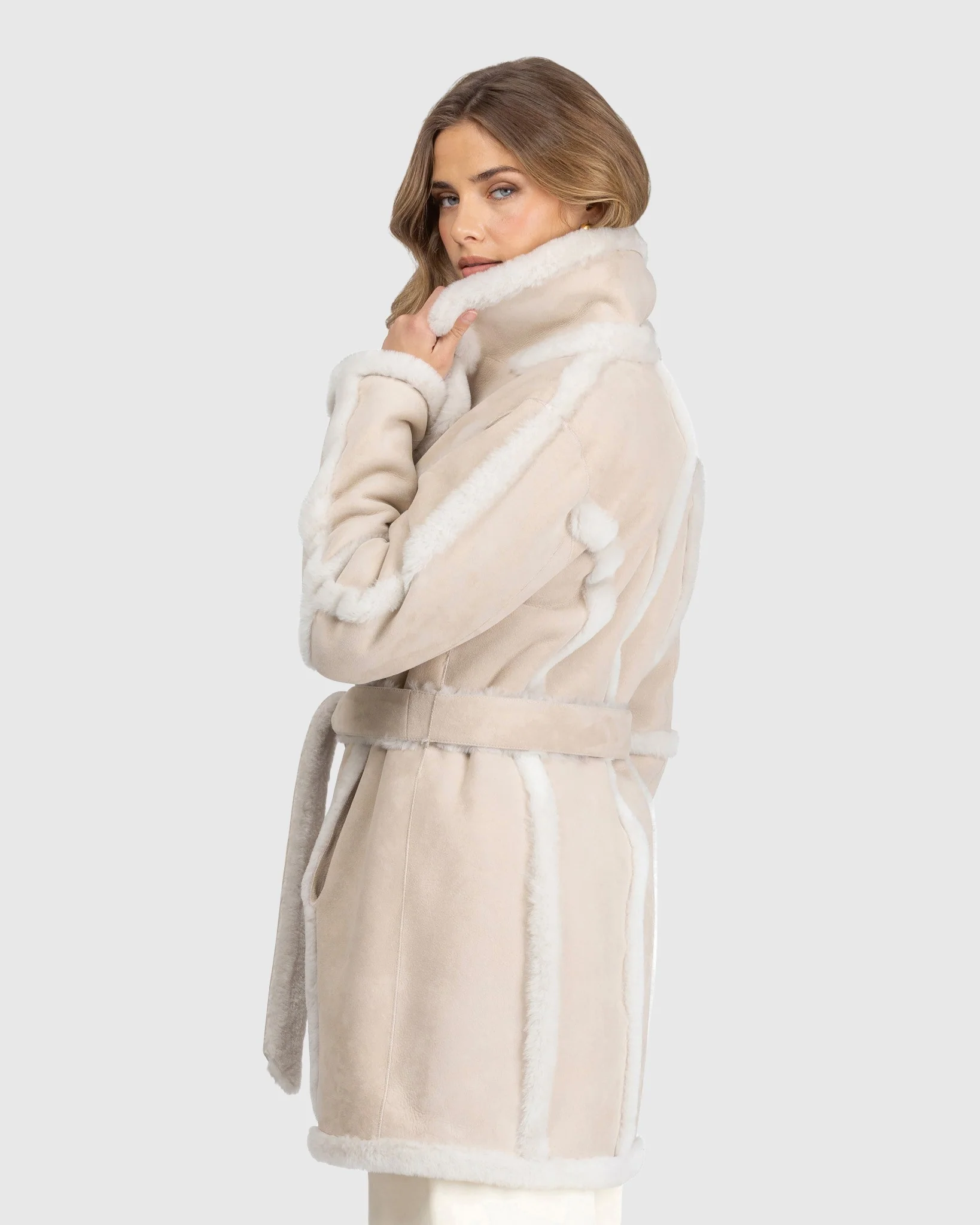 Merino Shearling Lamb Stroller with Spill Seam, Belt