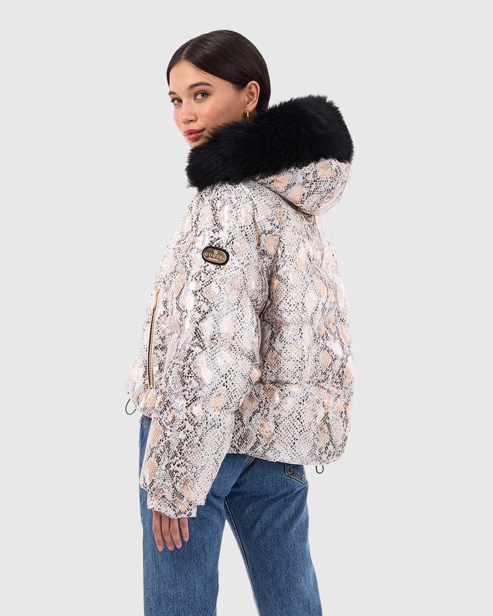 Printed Après-Ski Jacket with Detachable Toscana Shearling Lamb Hood Trim