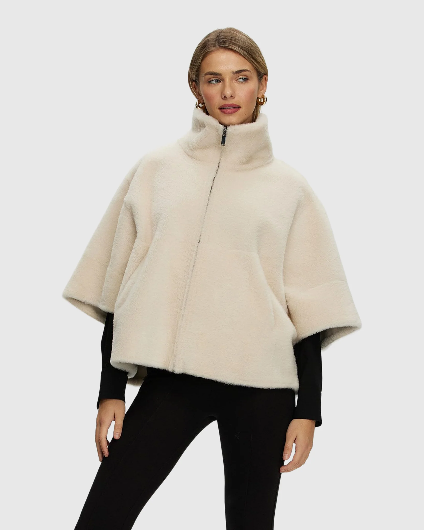 Reversible Shearling Lamb Short Sleeve Zip Cape