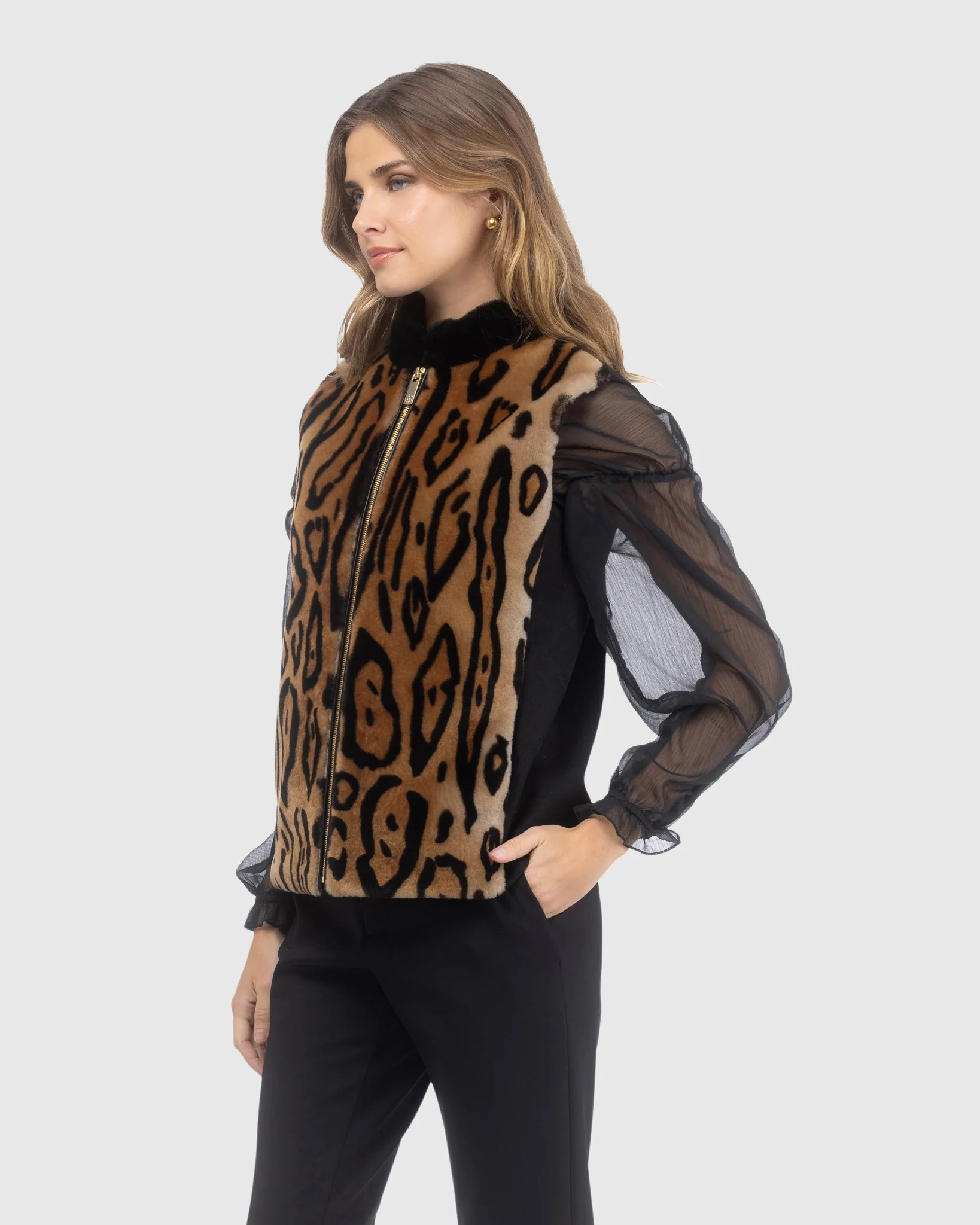 Elevate your wardrobe with the Select Shearling Lamb Zip Vest, featuring a luxurious wool back for unmatched warmth and softness.